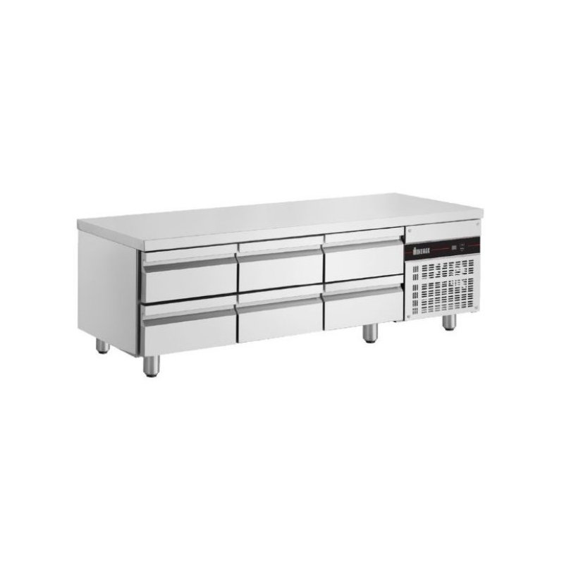 | Titre | Soubassement réfrigéré - froid ventilé +0 à +10°C - 230V mono - 6 tiroirs GN1/1 - 334W - 1790x700x645/705 mm |