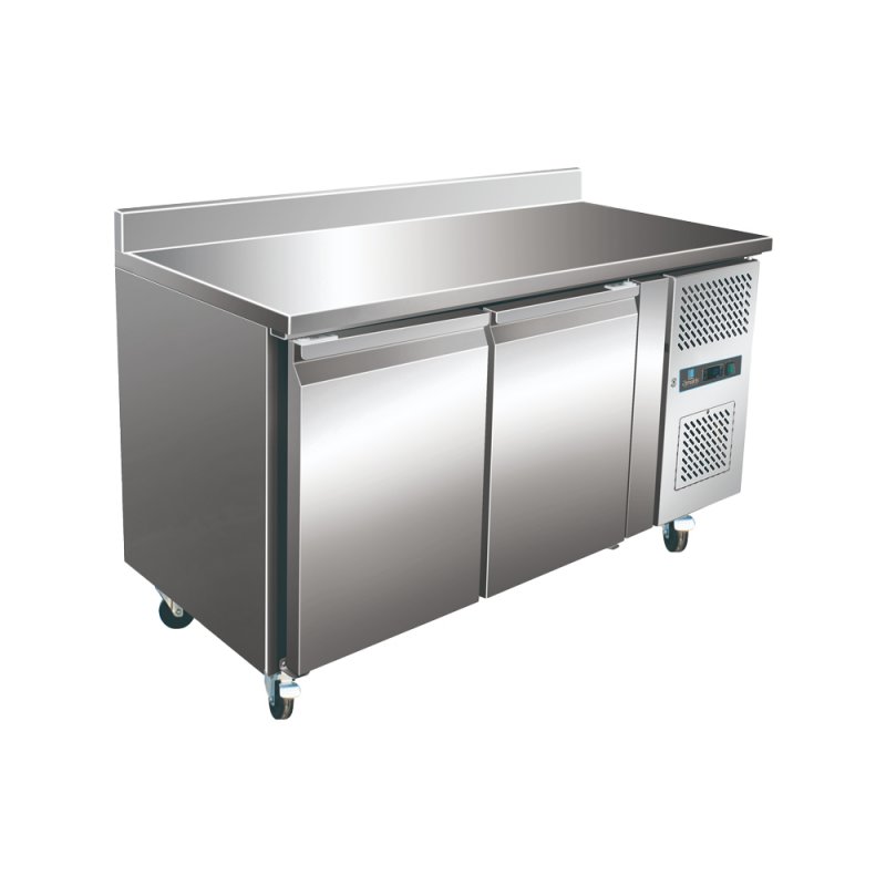 Table réfrigérée adossée 2 portes pleines avec dosseret GN 1/1.