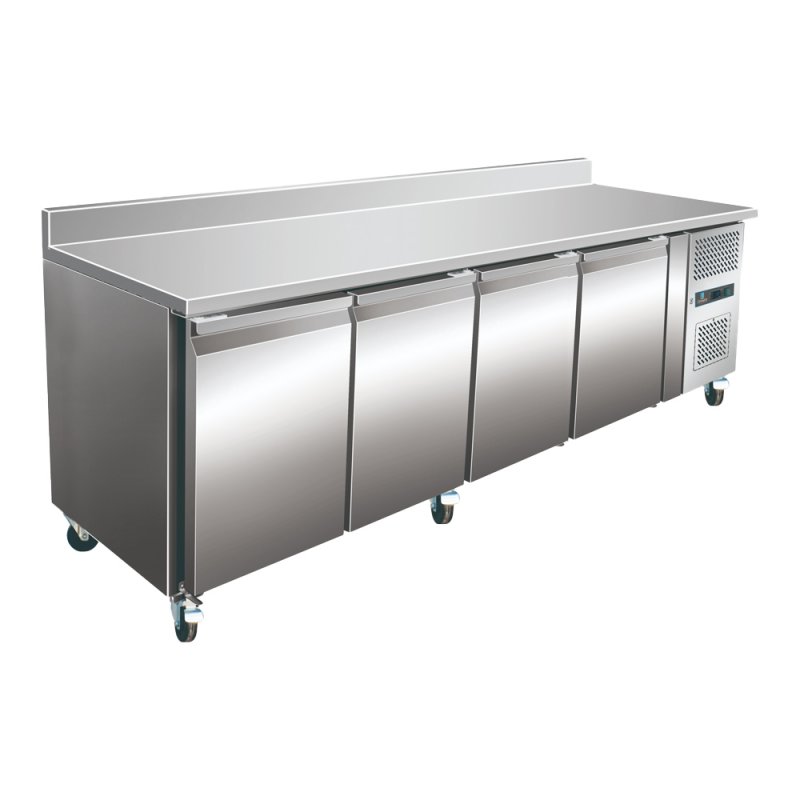 Table réfrigérée adossée 4 portes pleines avec dosseret GN 1/1.
