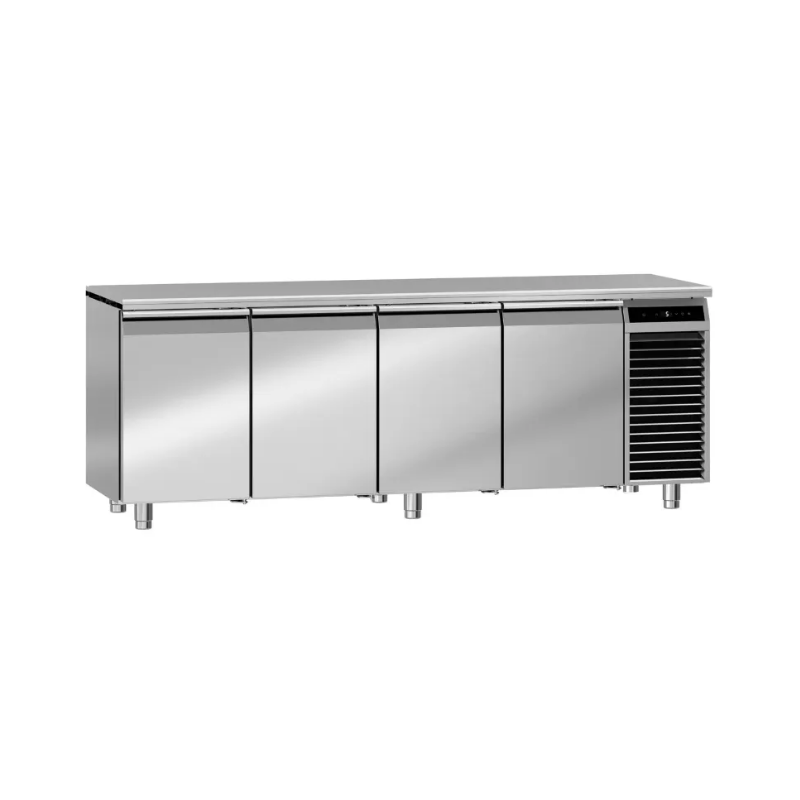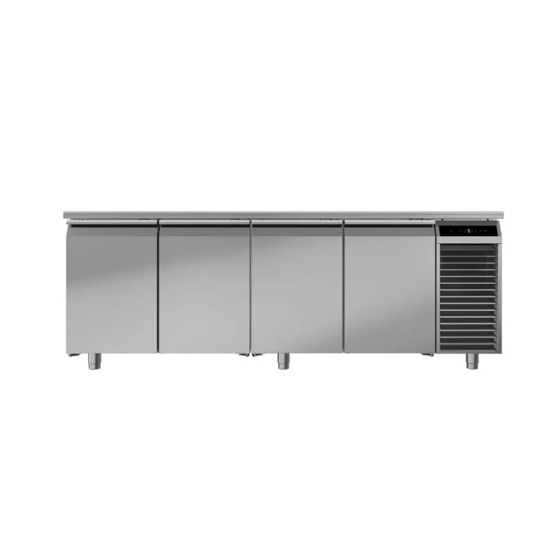 | Titre | Table réfrigérée positive - GN 1/1 - 4 portes avec dessus - 599L - Temp. -2°C/+8°C - 226x70x85 cm |