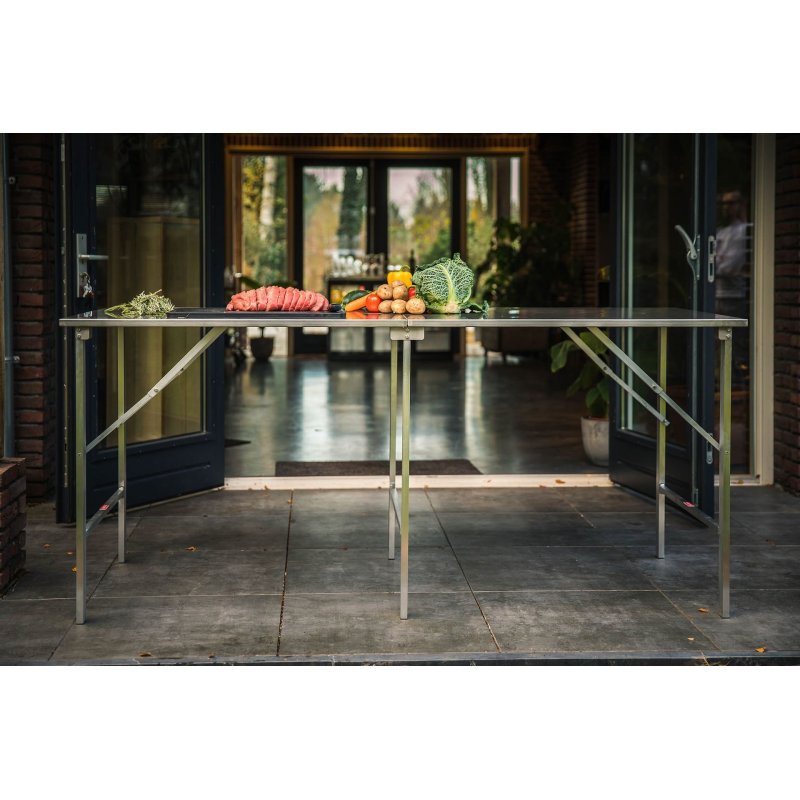 Cette table de travail mobile pliable et empilable, fabriquée en acier inoxydable, est spécialement conçue pour les traiteurs, les sociétés de location et autres acteurs du secteur de la restauration et de l'événementiel. La table est facile à utiliser et offre suffisamment d'espace pour effectuer toutes les tâches souhaitées. Le plateau est certifié HACCP et a une capacité de charge de 80 kg. Cette table de préparation / buffet est incontournable dans un espace où l'hygiène, l'espace et le plaisir de travailler sont indispensables !