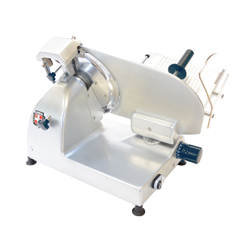 Cet équipement professionnel est doté d'un chariot démontable conforme aux normes C. E. , de vis de réglage, de pièces interchangeables, d'un anneau de pourtour de lame en inox et d'un affûteur intégré. La forme arrondie du carter facilite un nettoyage rapide et hygiénique.