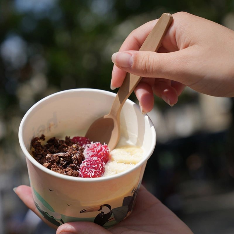 Fabriquées à base de biomatériaux issus notamment de la canne à sucre, ces petites cuillères peuvent être réutilisées au moins 100 fois en lave vaisselle.