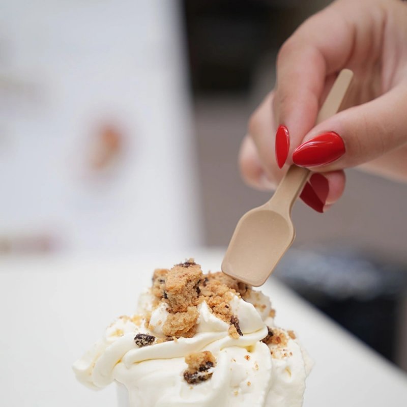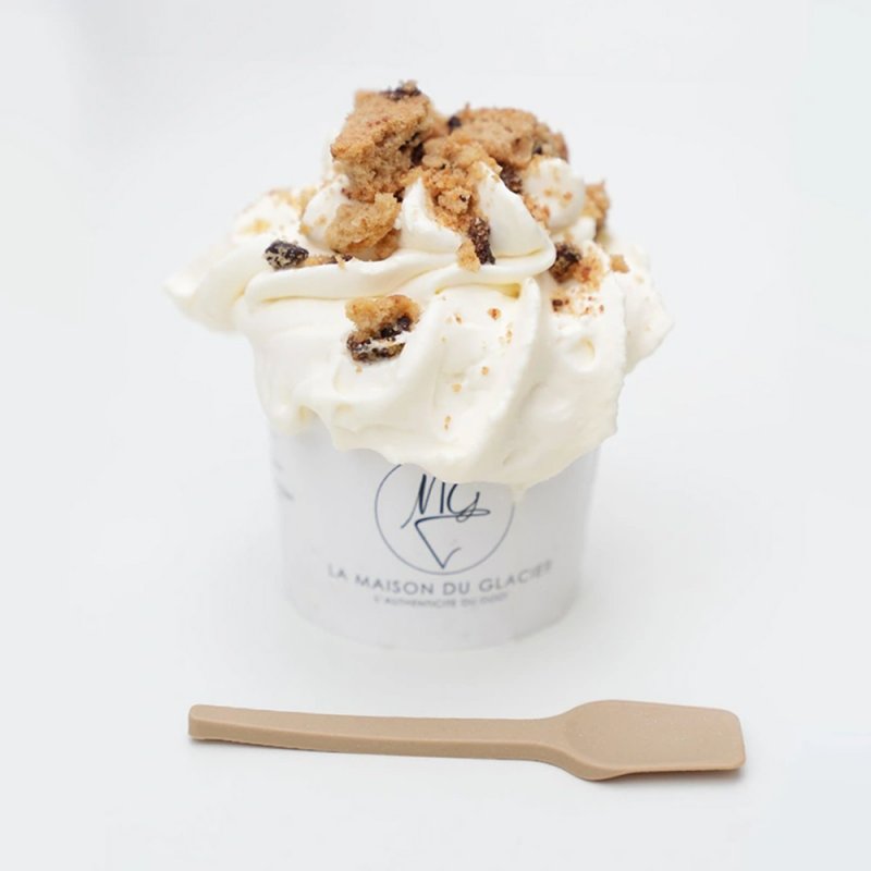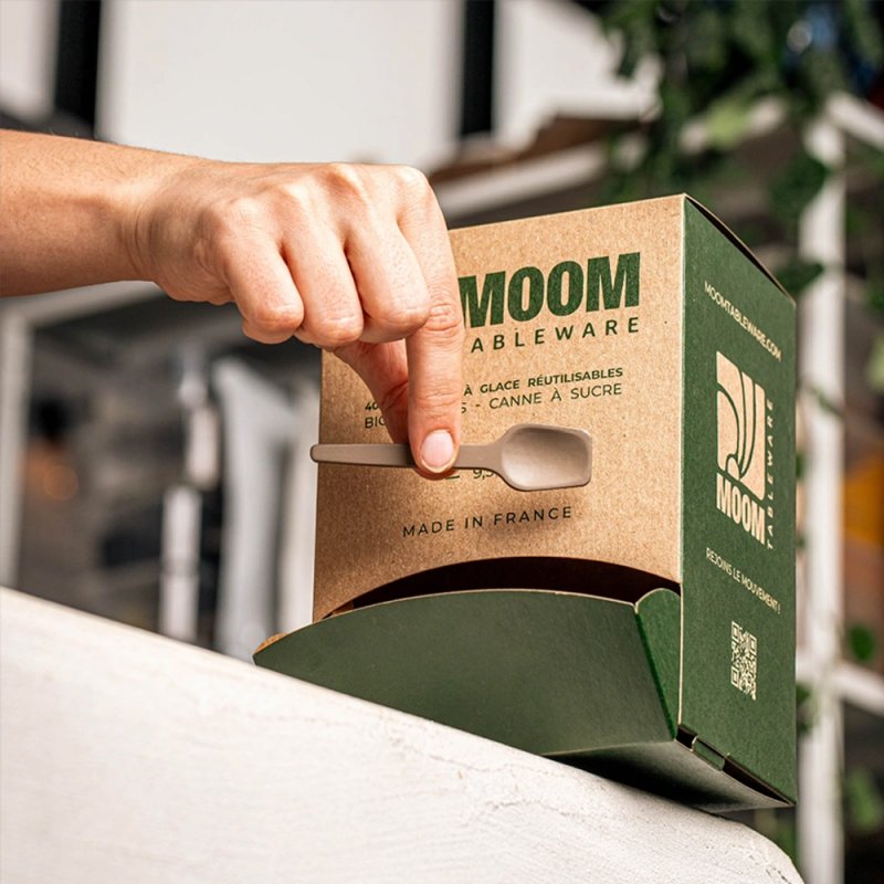 Fabriquées à base de biomatériaux issus notamment de la canne à sucre, ces cuillères à glace peuvent être réutilisées au moins 100 fois en lave vaisselle.