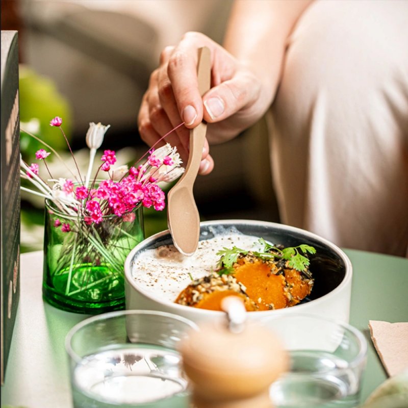 Fabriquées à base de biomatériaux issus notamment de la canne à sucre, ces cuillères de table peuvent être réutilisées au moins 100 fois en lave vaisselle.