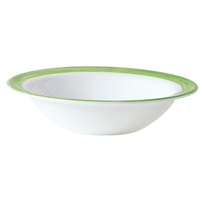 La coupelle ronde 12cm Brush 11cl en verre opale trempé blanc et décor vert d'Arcoroc est un produit de qualité supérieure...