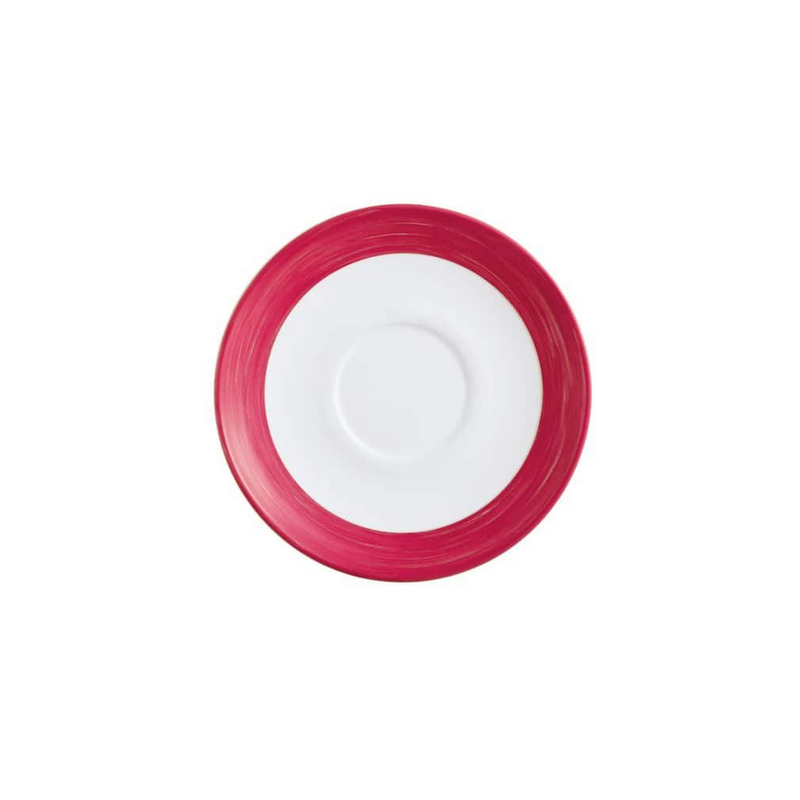 Le Soucoupe à thé Brush 14cm en verre opale trempé blanc et décor rouge cerise d'Arcoroc est un produit de qualité supérieure...
