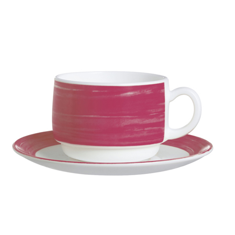 | Titre | Soucoupe à thé Brush 14cm en opale blanc et cherry |