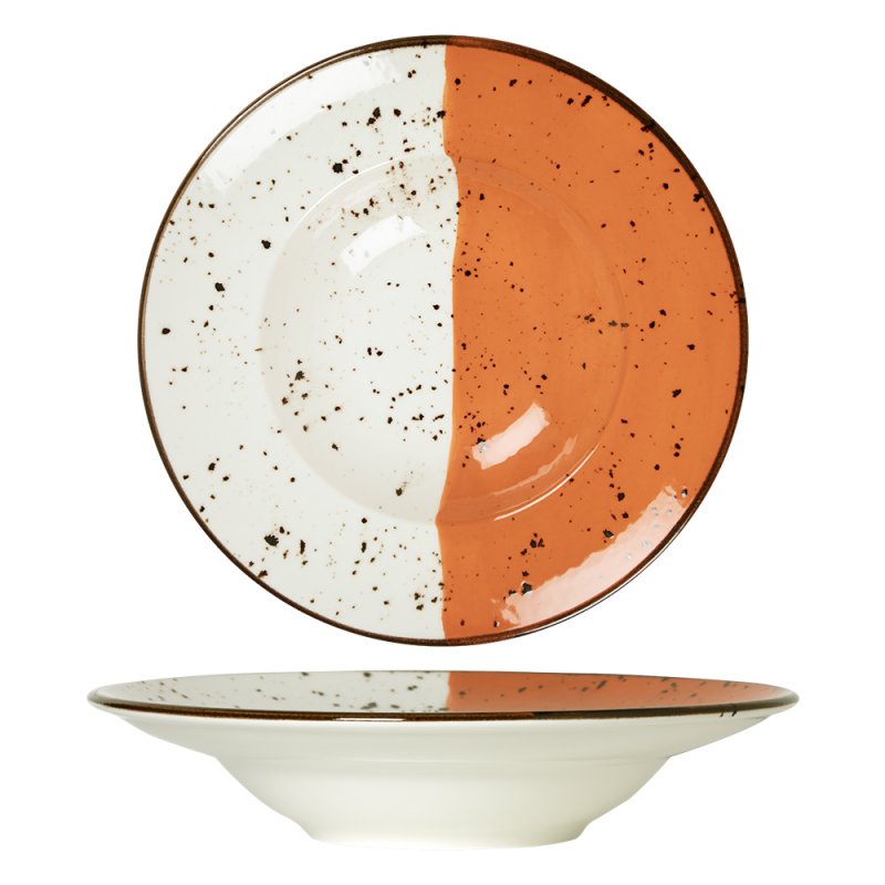| Titre | Assiette à pâtes - Porcelaine ø 27 cm - Hélios - Blanc, Ivoire et orange |