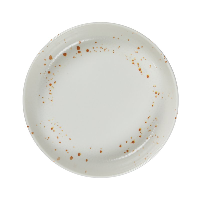 Son design raffiné associe une base blanche à des motifs oranges pour des tables rayonnantes !