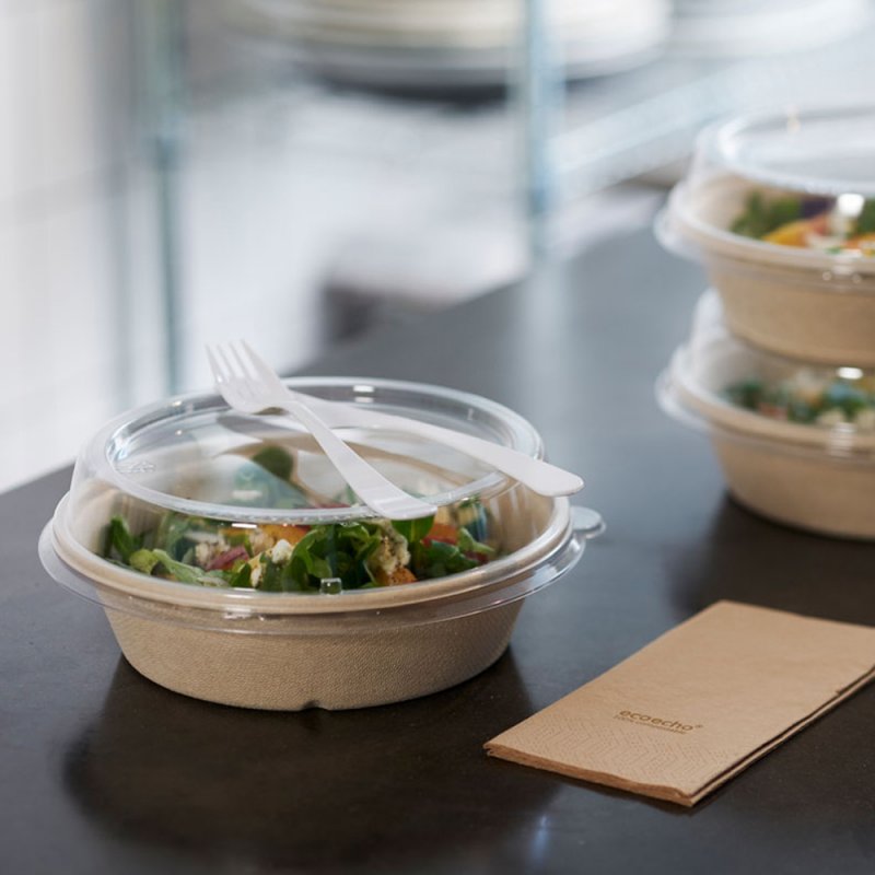 Découvrez notre bol droit en bagasse de 900 ml, idéal pour la vente à emporter.