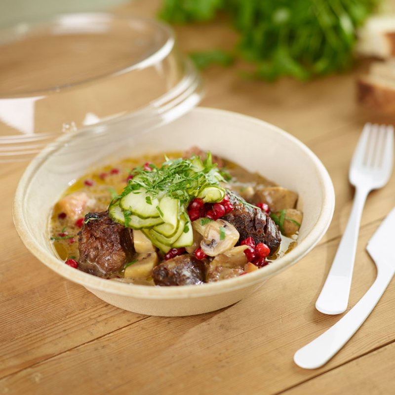 Le bol en bagasse, devenu extrêmement populaire, convient aux plats chauds et froids.