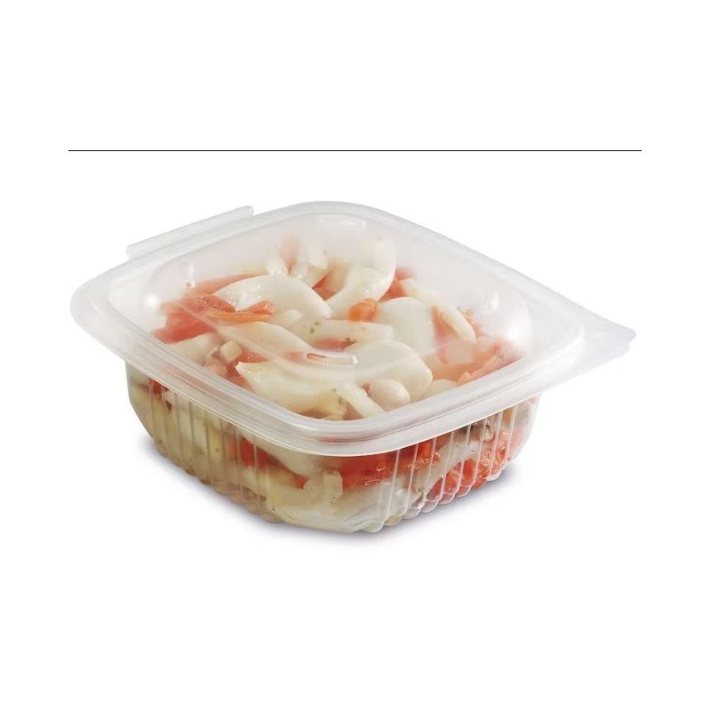 La barquette multifonction de 250 ml avec dimensions 12, 3 x 11, 4 x 5 cm est conçue pour une variété d'applications dans le secteur alimentaire. Fabriquée en polypropylène (PP), elle est adaptée pour le conditionnement, la conservation et le transport de petites portions d'aliments. Dotée d'une charnière robuste, cette barquette assure une fermeture sécurisée et peut être utilisée pour des températures allant de 0 à +100°C, ce qui la rend appropriée aussi bien pour les aliments froids que chauds.