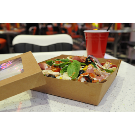 | Titre | Boîte à salade 16x16x5 cm en kraft brun et couvercle à fenêtre |