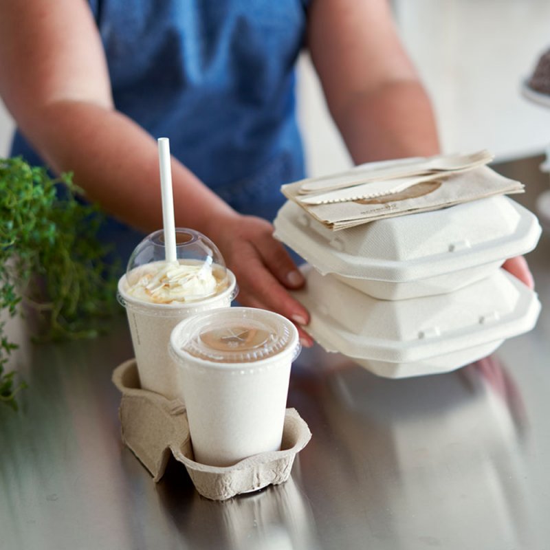 Le couvercle transparent est composé à 100 % de PET recyclé après consommation (RPET) et se recyclent facilement une fois utilisés.